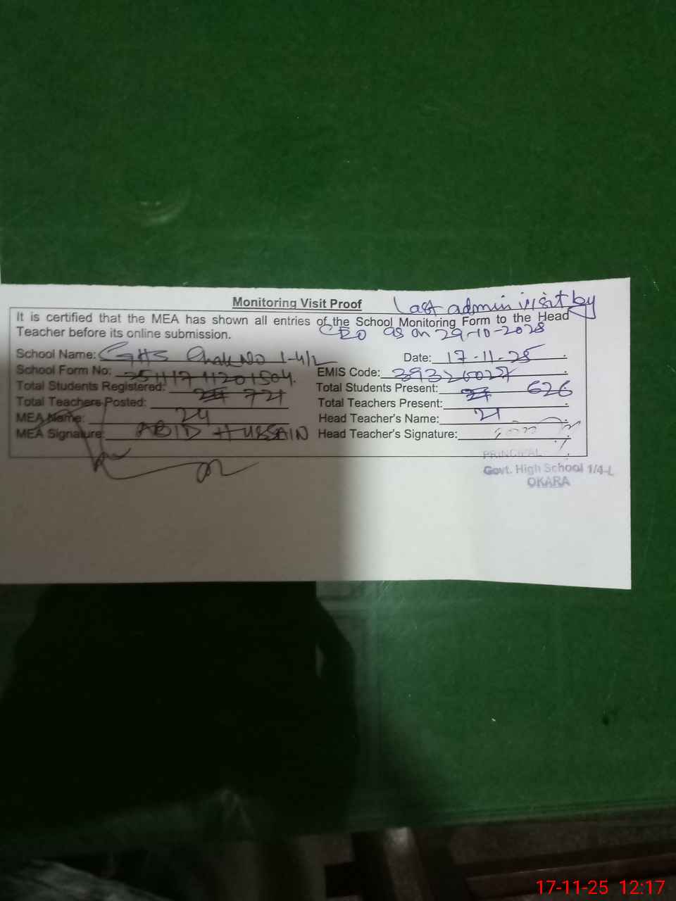 | Certified that this School was Inspected by the Undersigned MEA/DMO Today and the Information Stated Above is as Per Record. | |||||