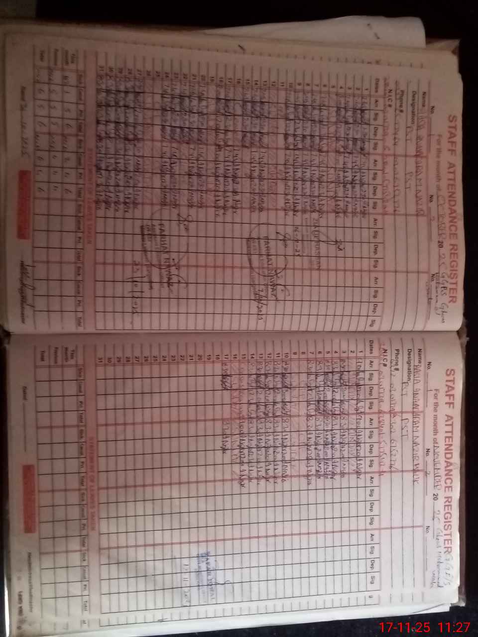 | CNIC | Full Name | Designation | R/C | Absence During Last Calender Month |