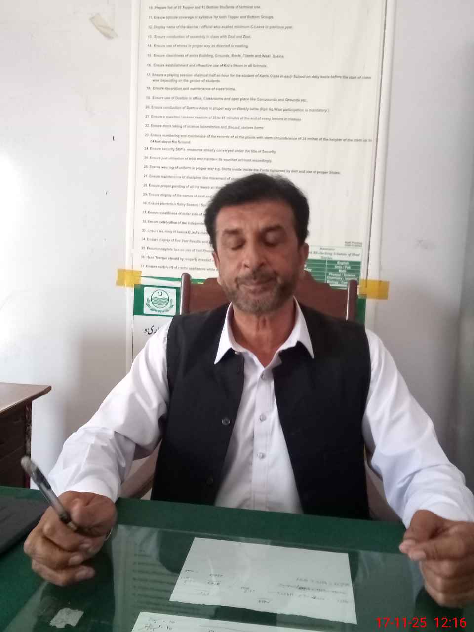 | Name: Sh**** Al**** Designation: (School Headmaster's/Headmistress's) Pst Phone/Cell Number: 03**** |