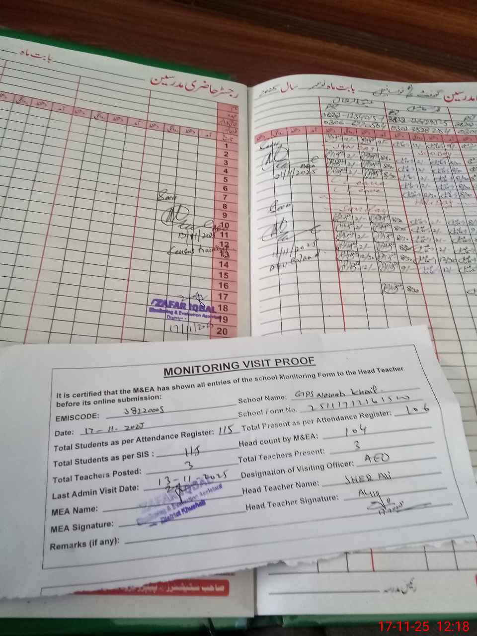 | EMIS Code: 38220005 | Name of School: GPS DERA NAWAB KALOO | |||