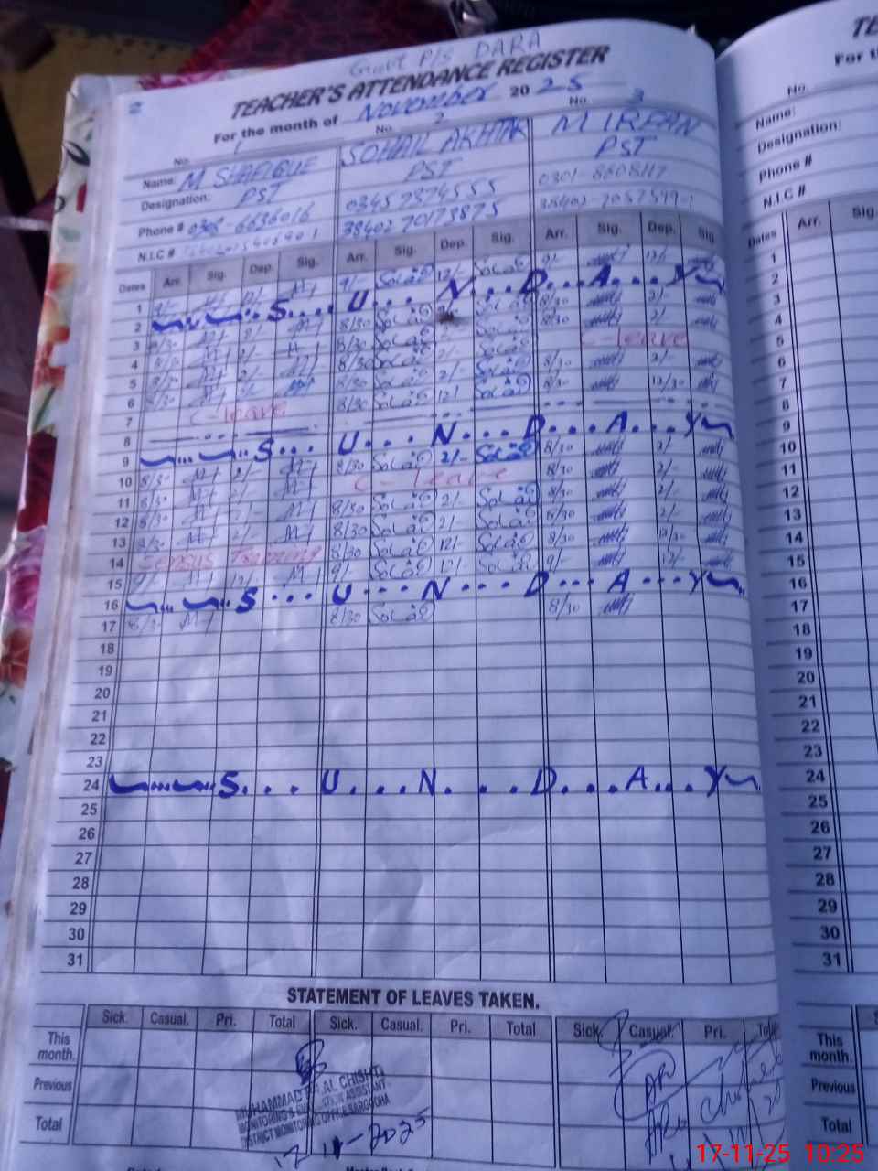 | Name: MU**** SH**** Designation: (School Headmaster's/Headmistress's) PST Phone/Cell Number: 03**** |