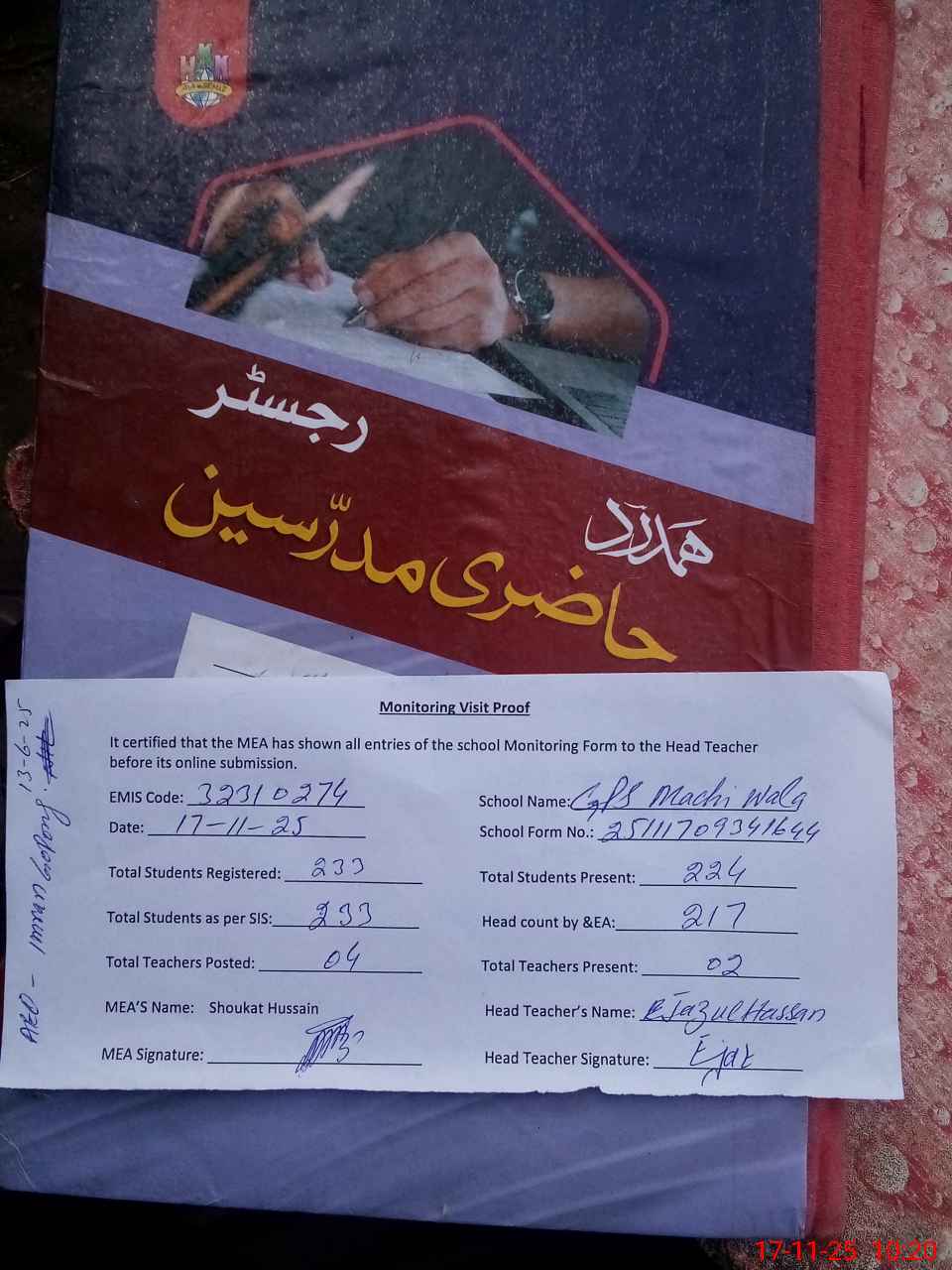 | EMIS Code: 32310274 | Name of School: GPS MACHI WALA | |||