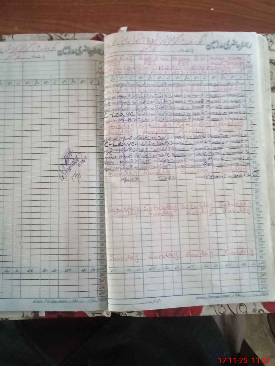 | CNIC | Full Name | Designation | R/C | Absence During Last Calender Month |