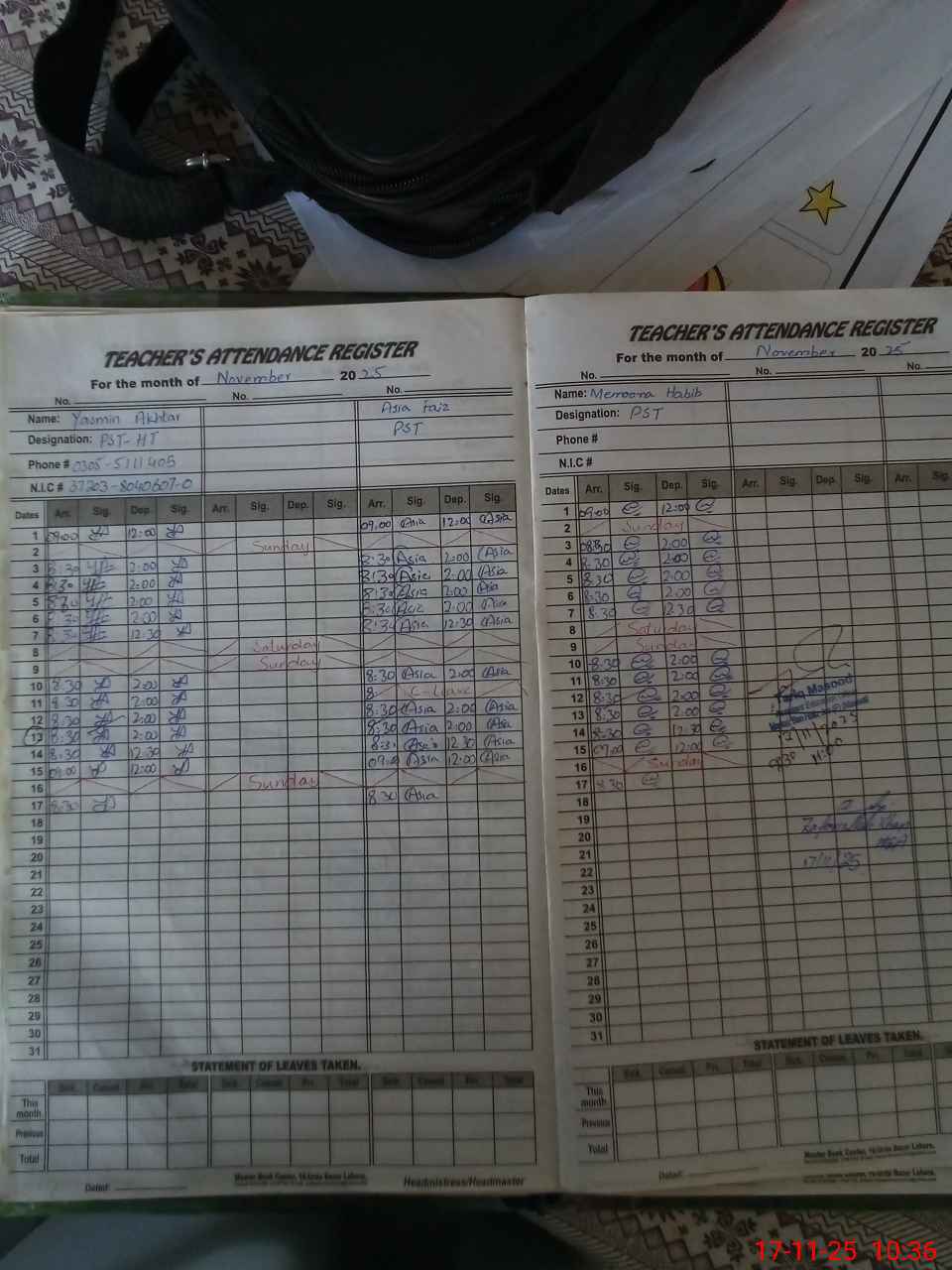 | Name: YA**** AK**** Designation: (School Headmaster's/Headmistress's) PST Phone/Cell Number: 03**** |