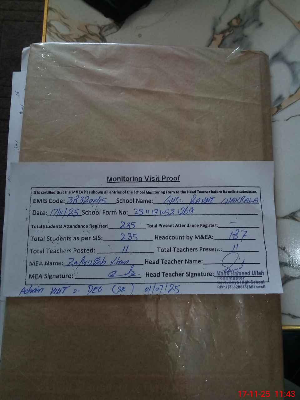 | EMIS Code: 38320045 | Name of School: GHS RAKHI | |||