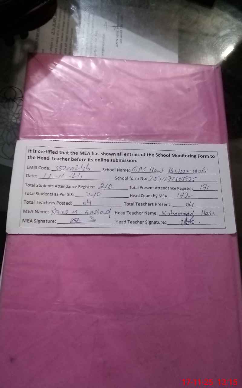 | EMIS Code: 35210246 | Name of School: GPS NEW BUKEN WALI | |||