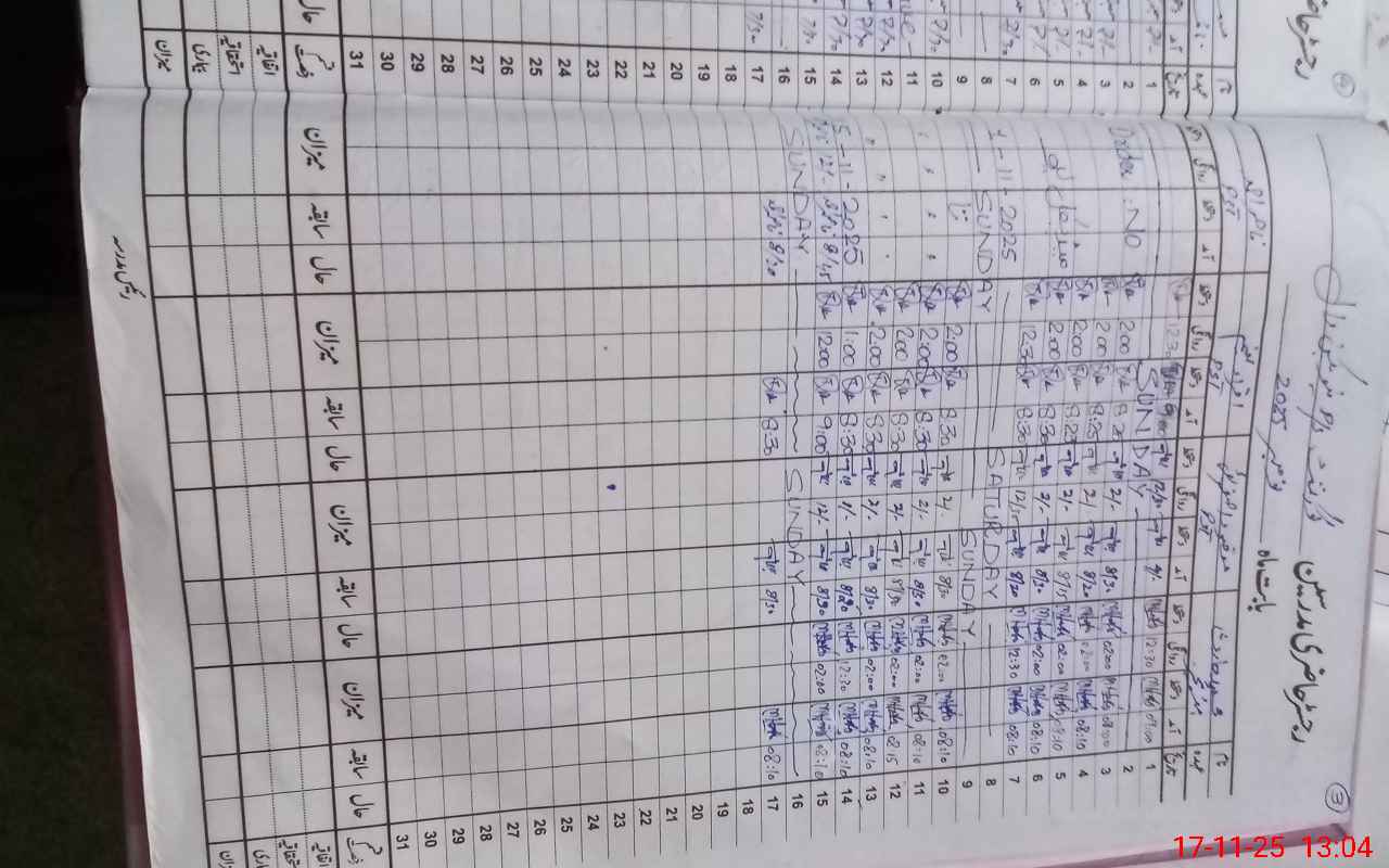 | CNIC | Full Name | Designation | R/C | Absence During Last Calender Month |