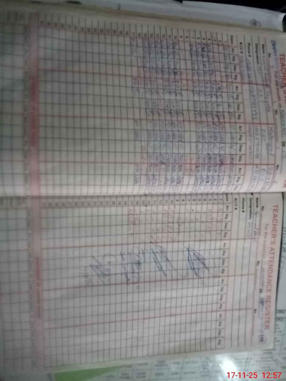 | CNIC | Full Name | Designation | R/C | Absence During Last Calender Month |