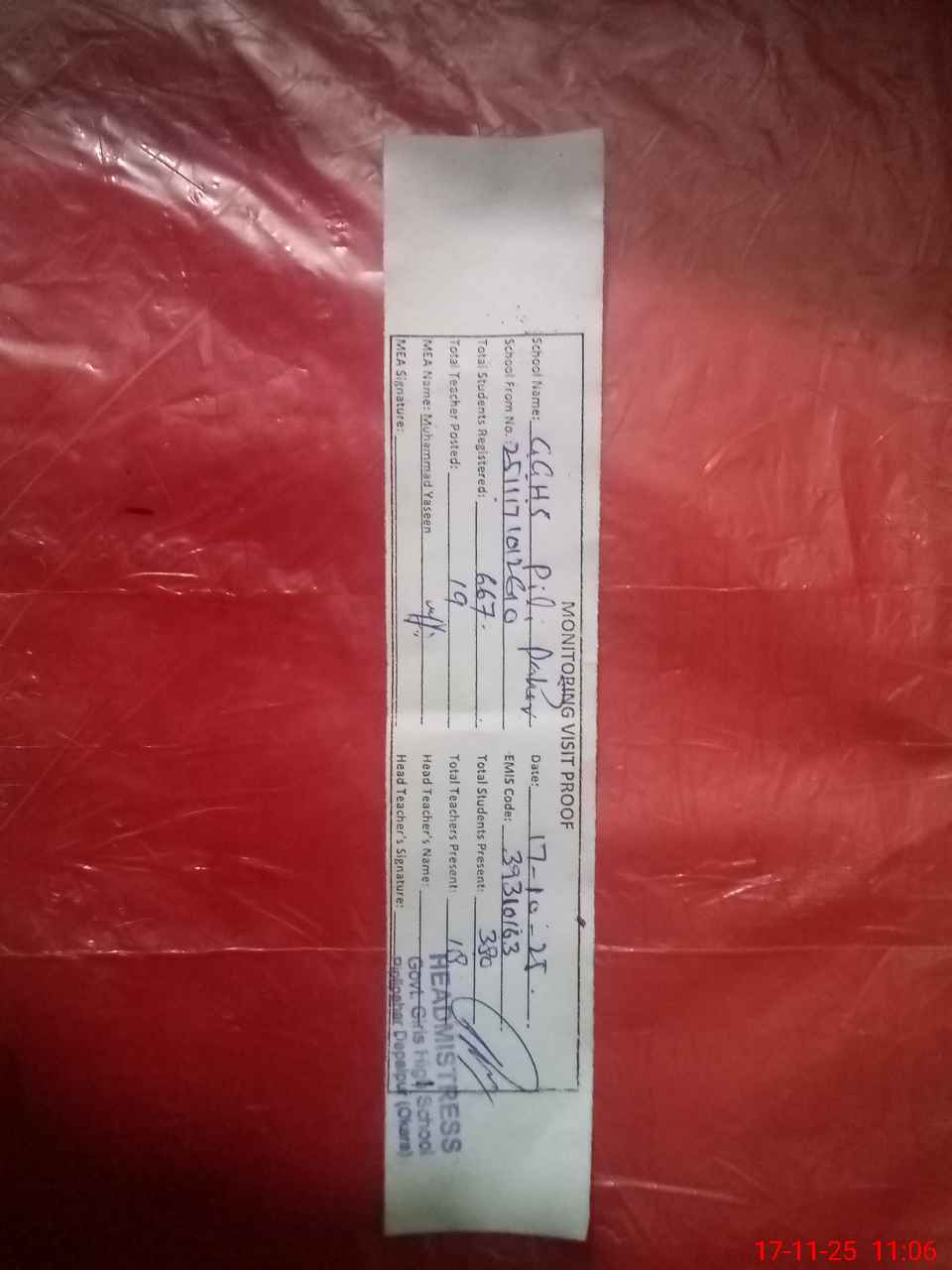 | EMIS Code: 39310163 | Name of School: GGHS PIPLI PAHAR | |||