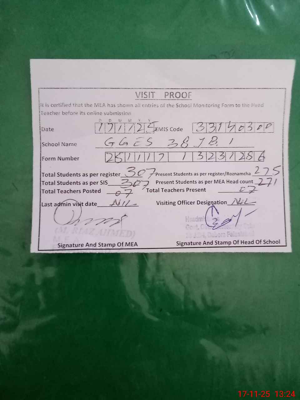 | EMIS Code: 33140300 | Name of School: GGES CHAK 38 JB 1 DABORA | |||