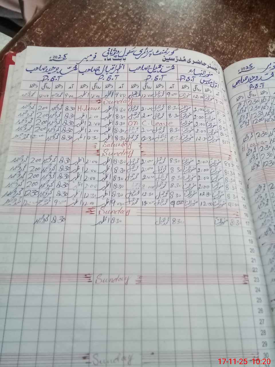 | Leave | Duty | Absent | Maternity | Medical | Ex- Pak |