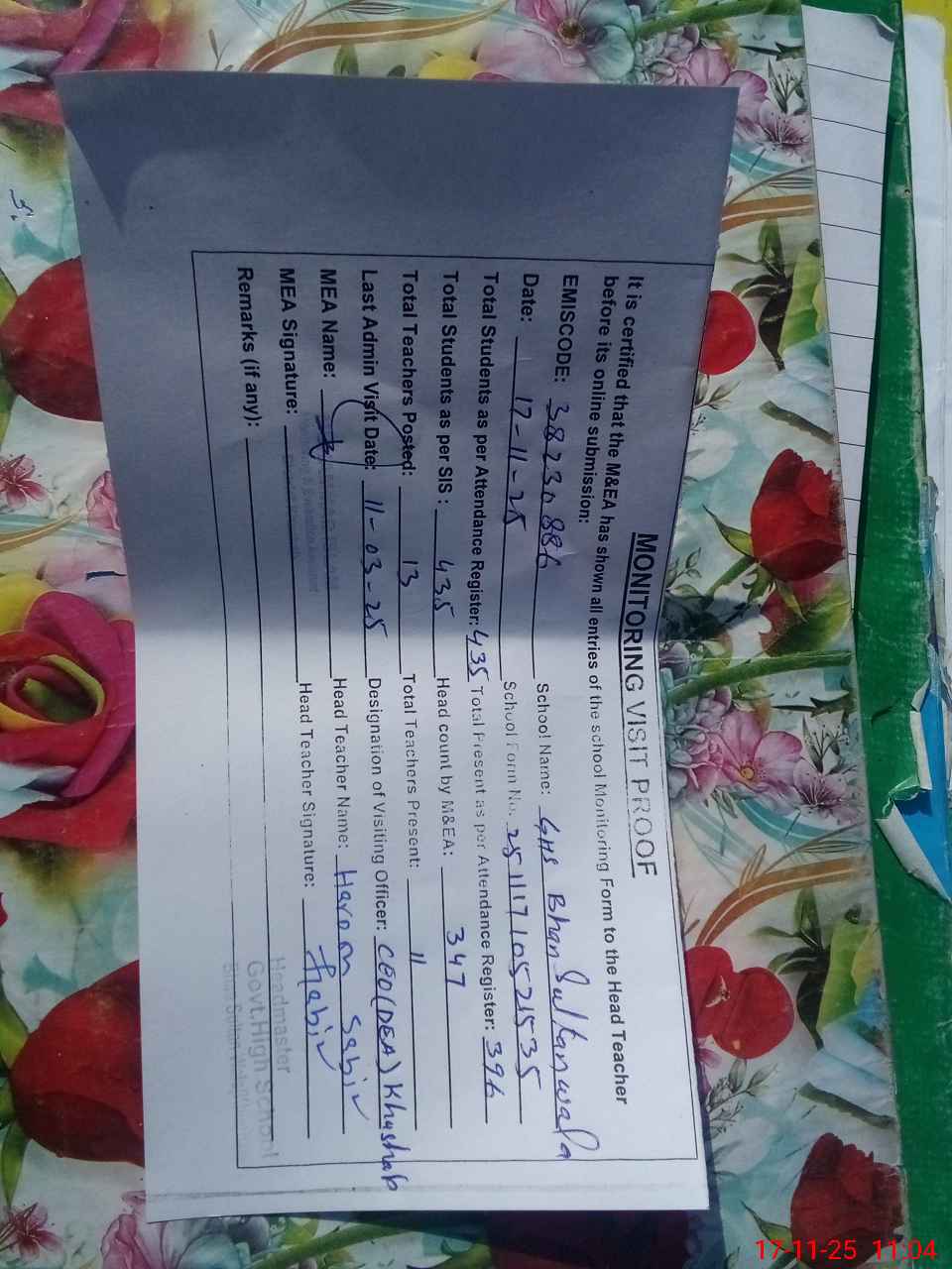 | Remarks (Use Separate Page if Required): CEO visited school on 11 March 2025 Students strength on sis 435 | |||||