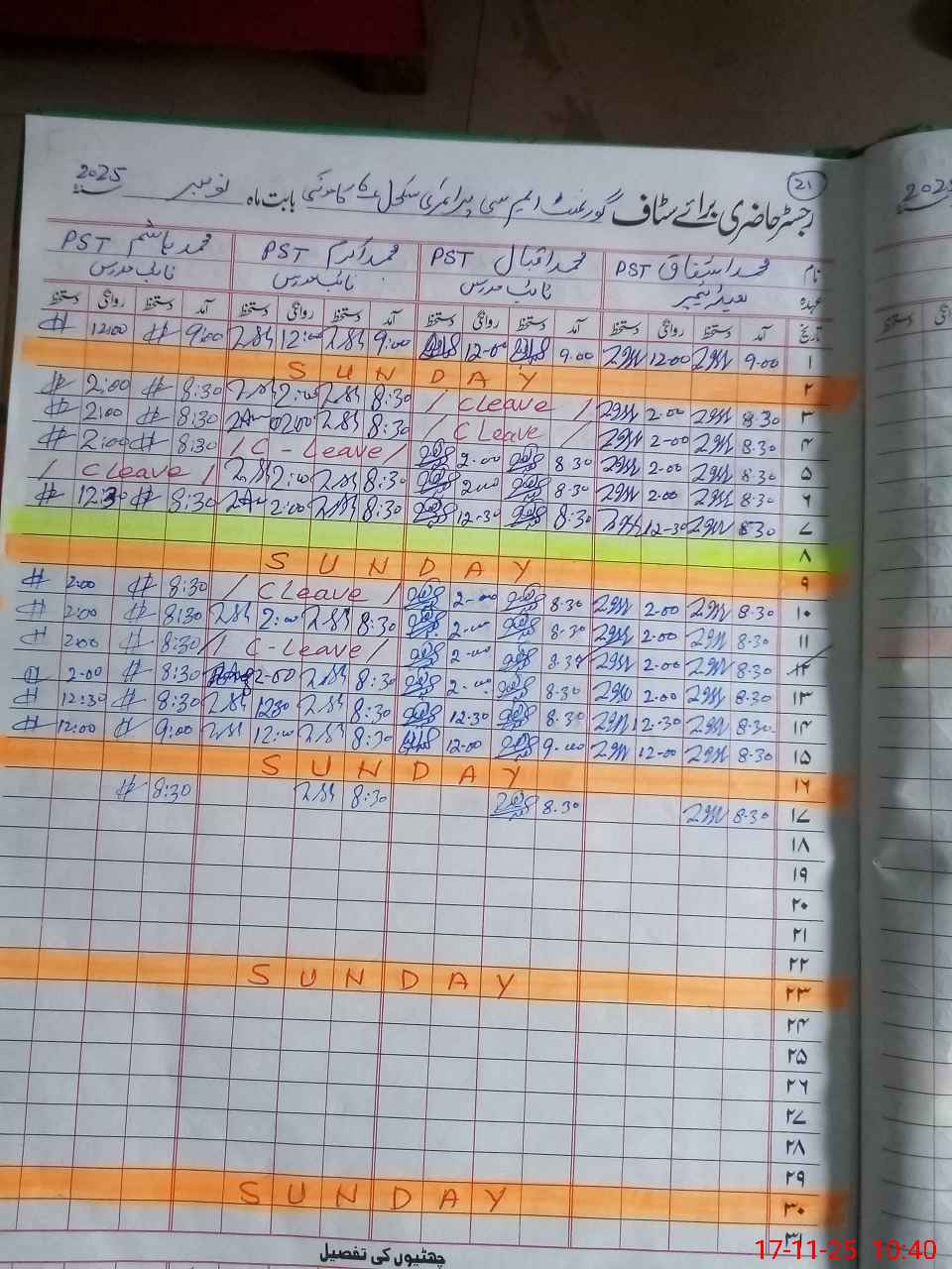 | CNIC | Full Name | Designation | R/C | Absence During Last Calender Month |