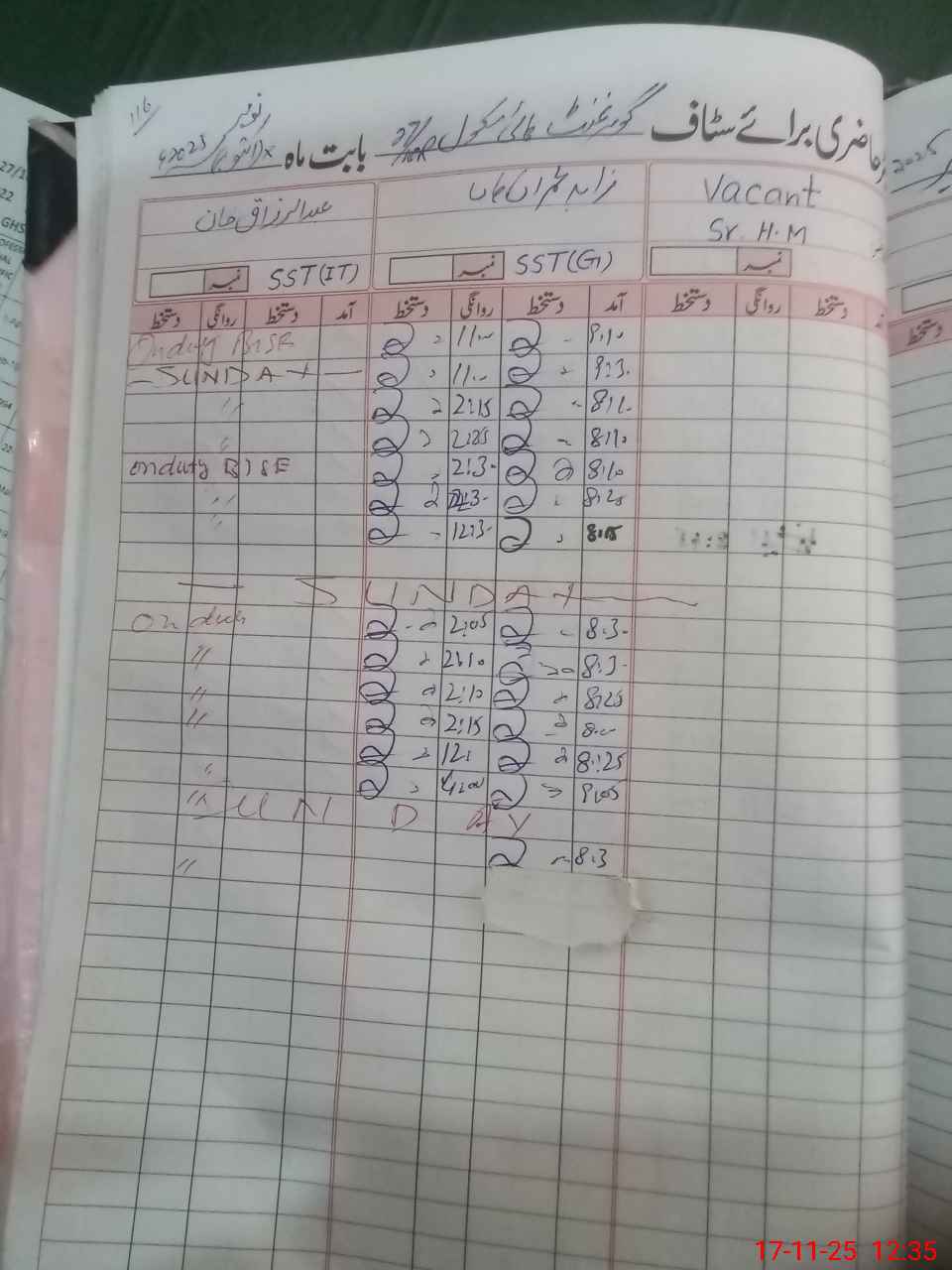 | 36**** | Ab**** Gh**** | ESE Arts | Regular | 0 | 0 | 0 | 0 | 0 | 0 | 0 | 0 | 0 | Exam Duty |