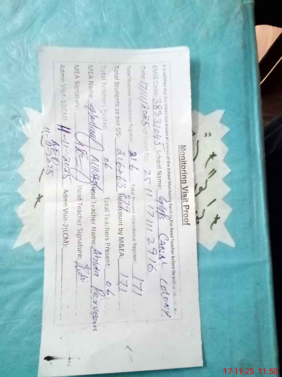 | EMIS Code: 38331045 | Name of School: GGPS CANAL COLONY KUNDIAN | |||