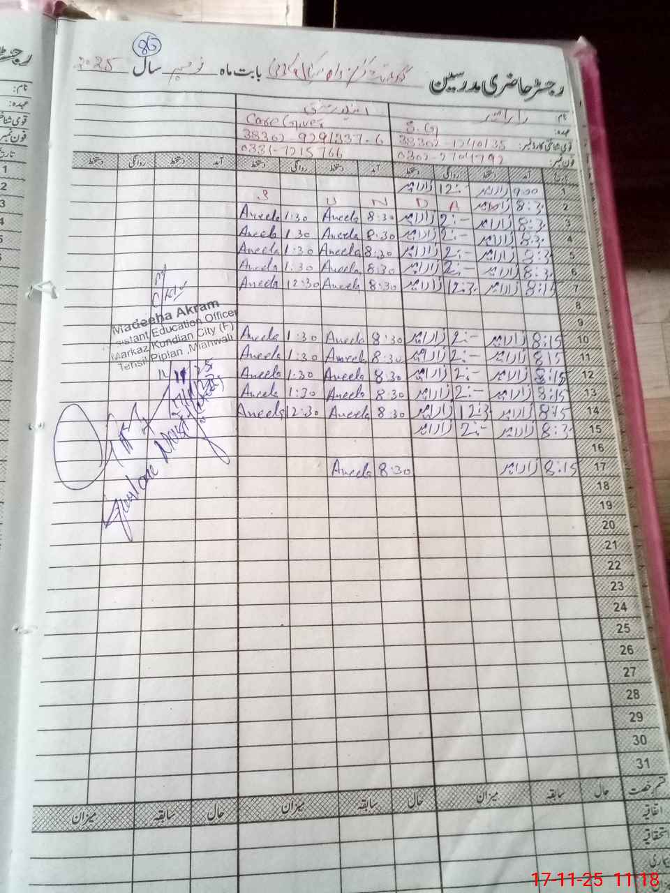 | Name: Ab**** Pe**** Designation: (School Headmaster's/Headmistress's) PST Phone/Cell Number: 03**** |