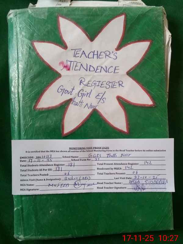 | EMIS Code: 38410113 | Name of School: GGES THATTI NOOR | |||