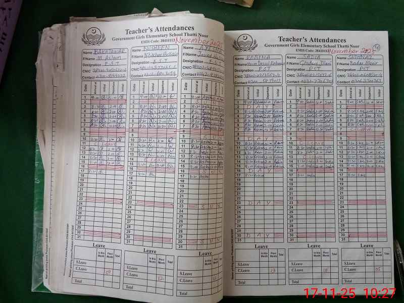 | CNIC | Full Name | Designation | R/C | Absence During Last Calender Month |