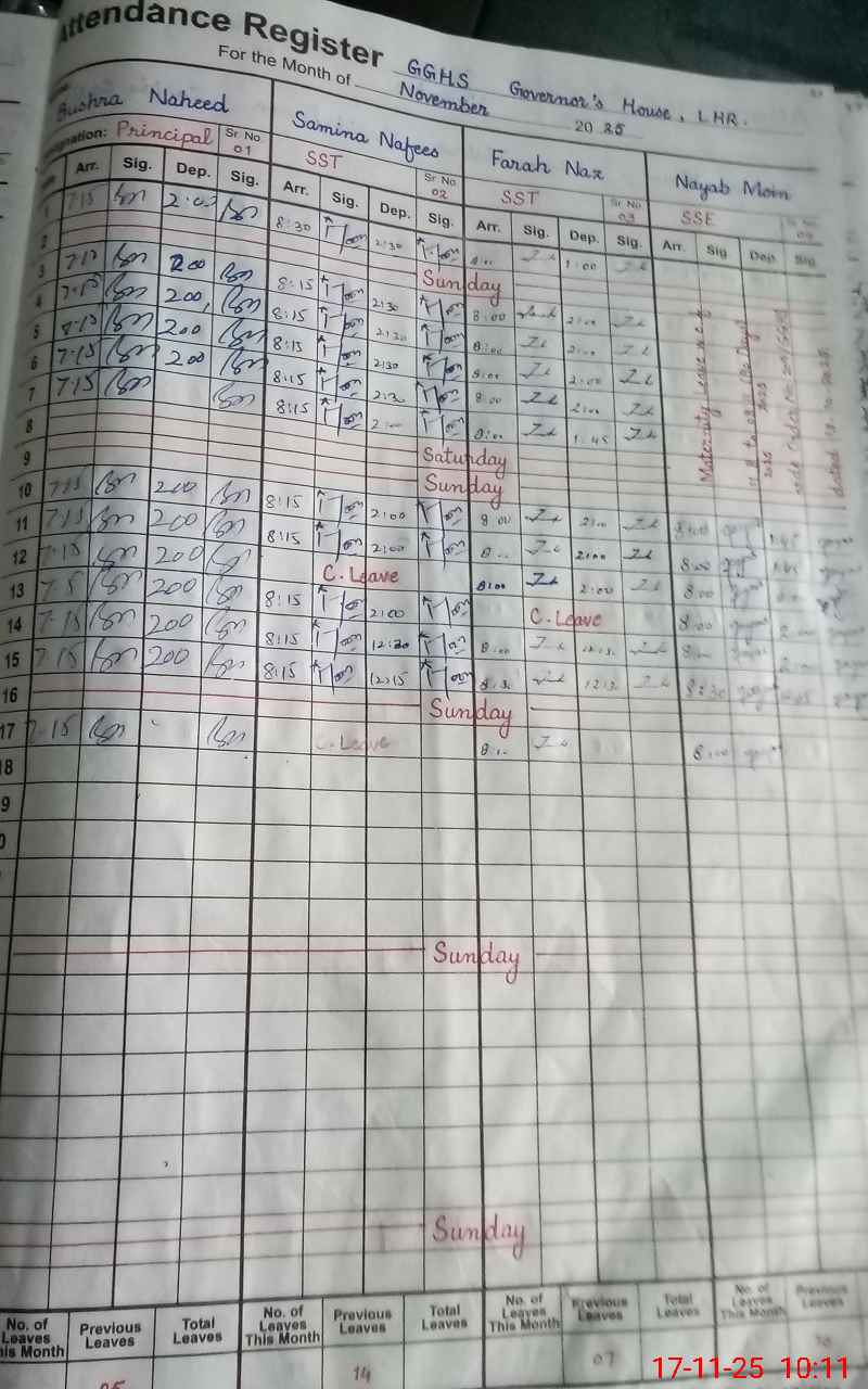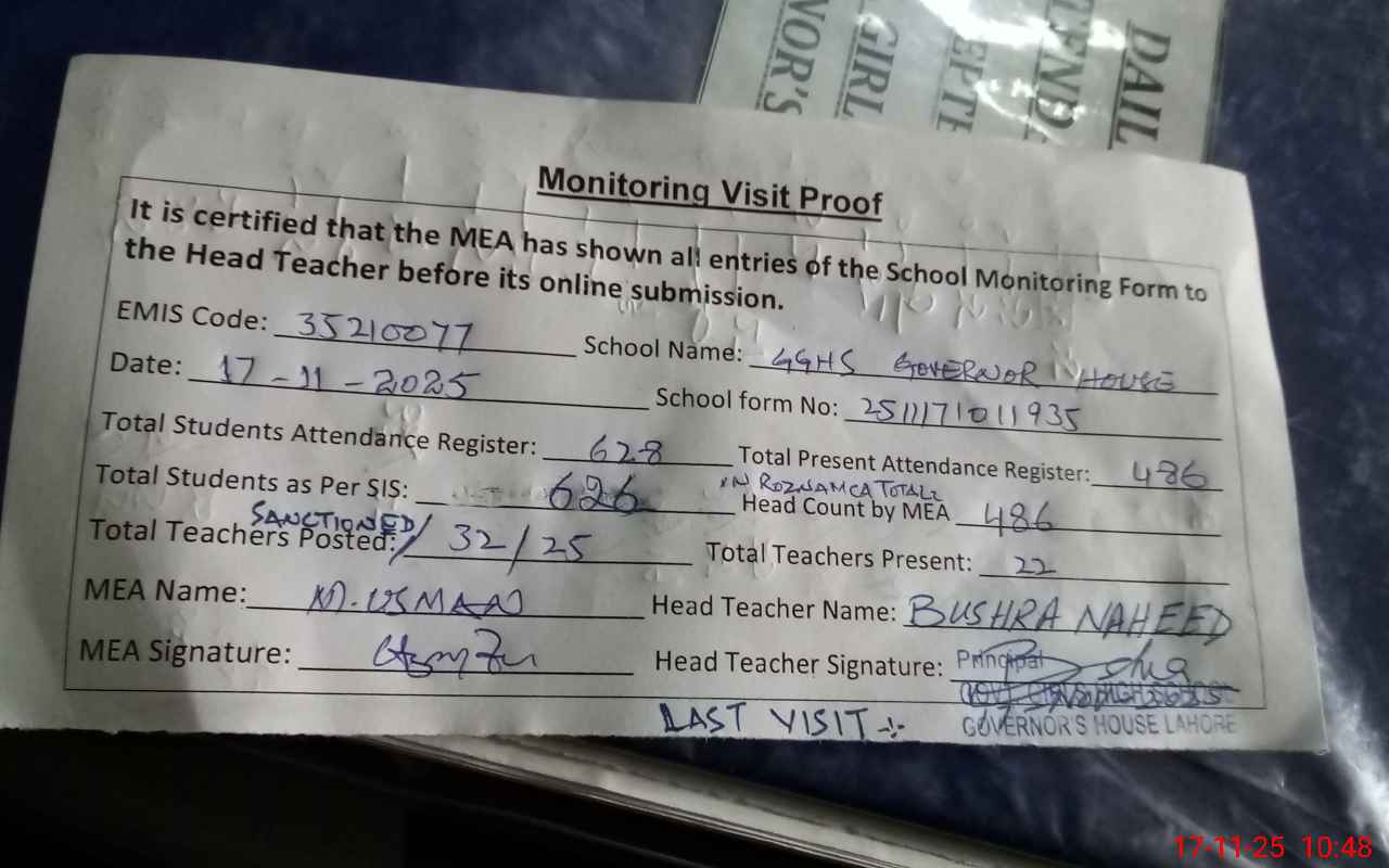 | EMIS Code: 35210077 | Name of School: GGHS GOVERNOR HOUSE LAHORE | |||