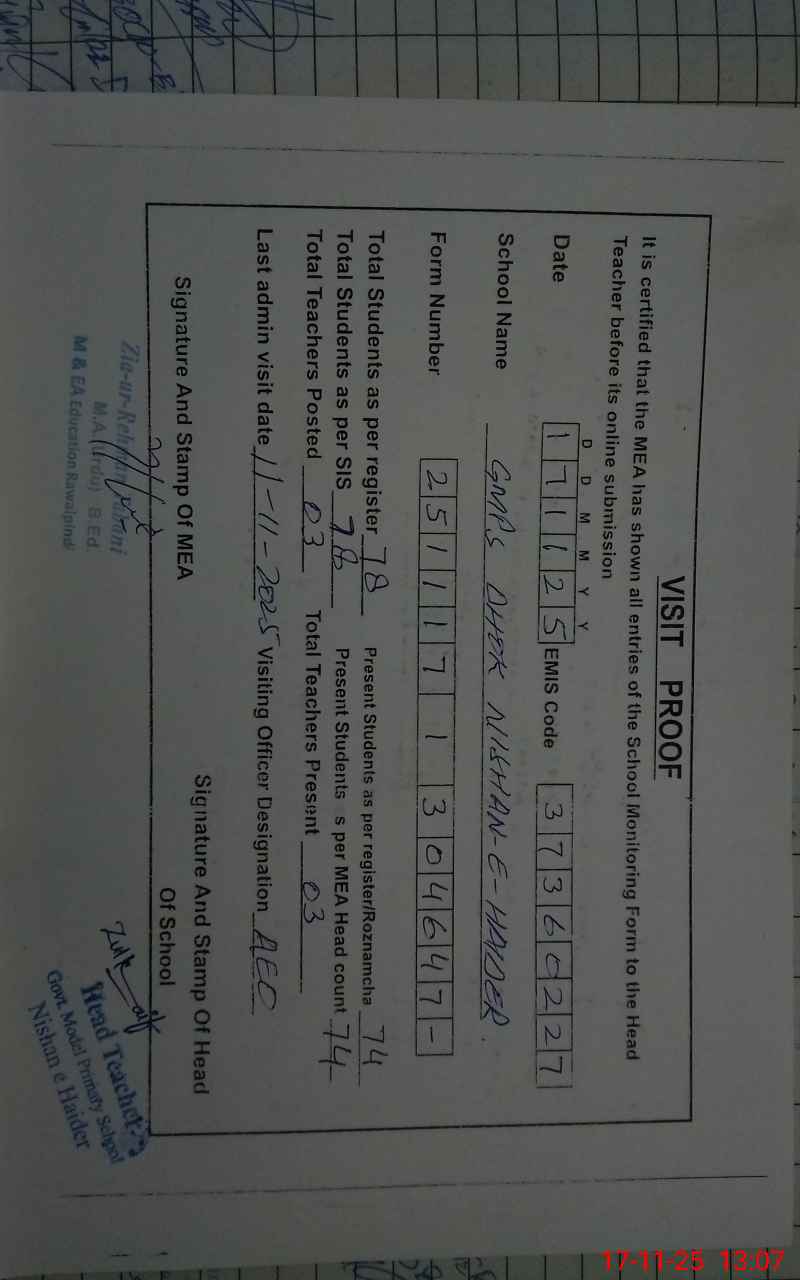 | EMIS Code: 37360227 | Name of School: GMPS DHOK NISHAN-E-HAIDER | |||