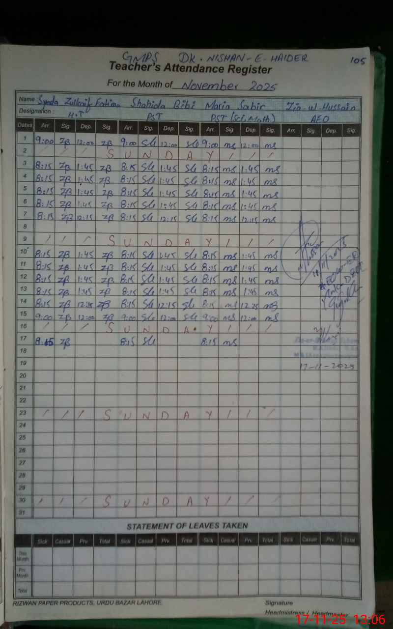 | Name: Sy**** Zu**** Fa**** Designation: (School Headmaster's/Headmistress's) PST/PTC/JV Phone/Cell Number: 03**** |