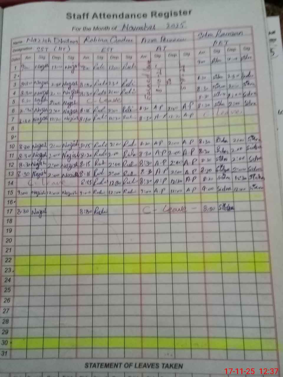 | 31**** | Mu**** Me**** | Regular | 0 | 0 | 31 | 0 | 0 | 0 | 0 | 0 | 0 | Absent (Un-Authorized) | |