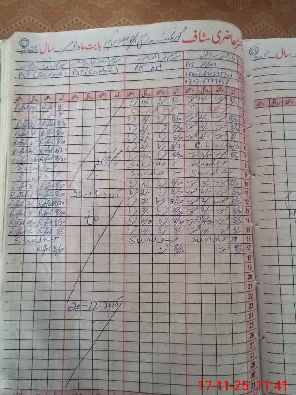 | CNIC | Full Name | Designation | R/C | Absence During Last Calender Month |
