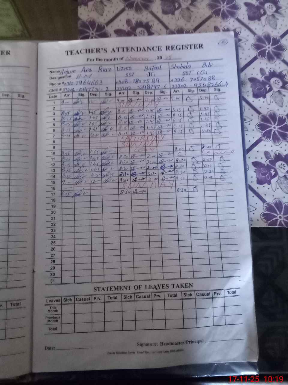 | Name: AN**** AR**** RA**** Designation: (School Headmaster's/Headmistress's) H M Phone/Cell Number: 03**** |