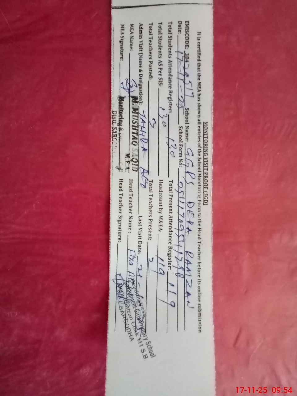 | EMIS Code: 38420517 | Name of School: GGPS DERA RAMZAN | |||