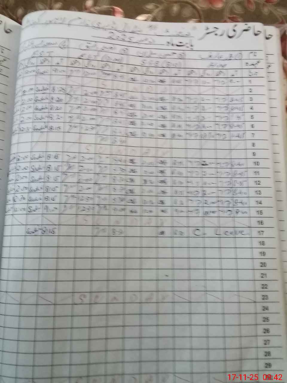 | 35**** | Mu**** Ar**** | Regular | 1 | 0 | 0 | 0 | 0 | 0 | 0 | 0 | 1 | Absent (Un-Authorized) | |