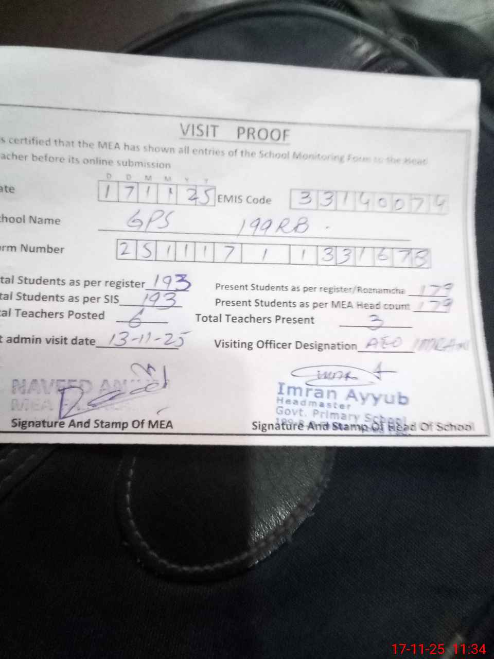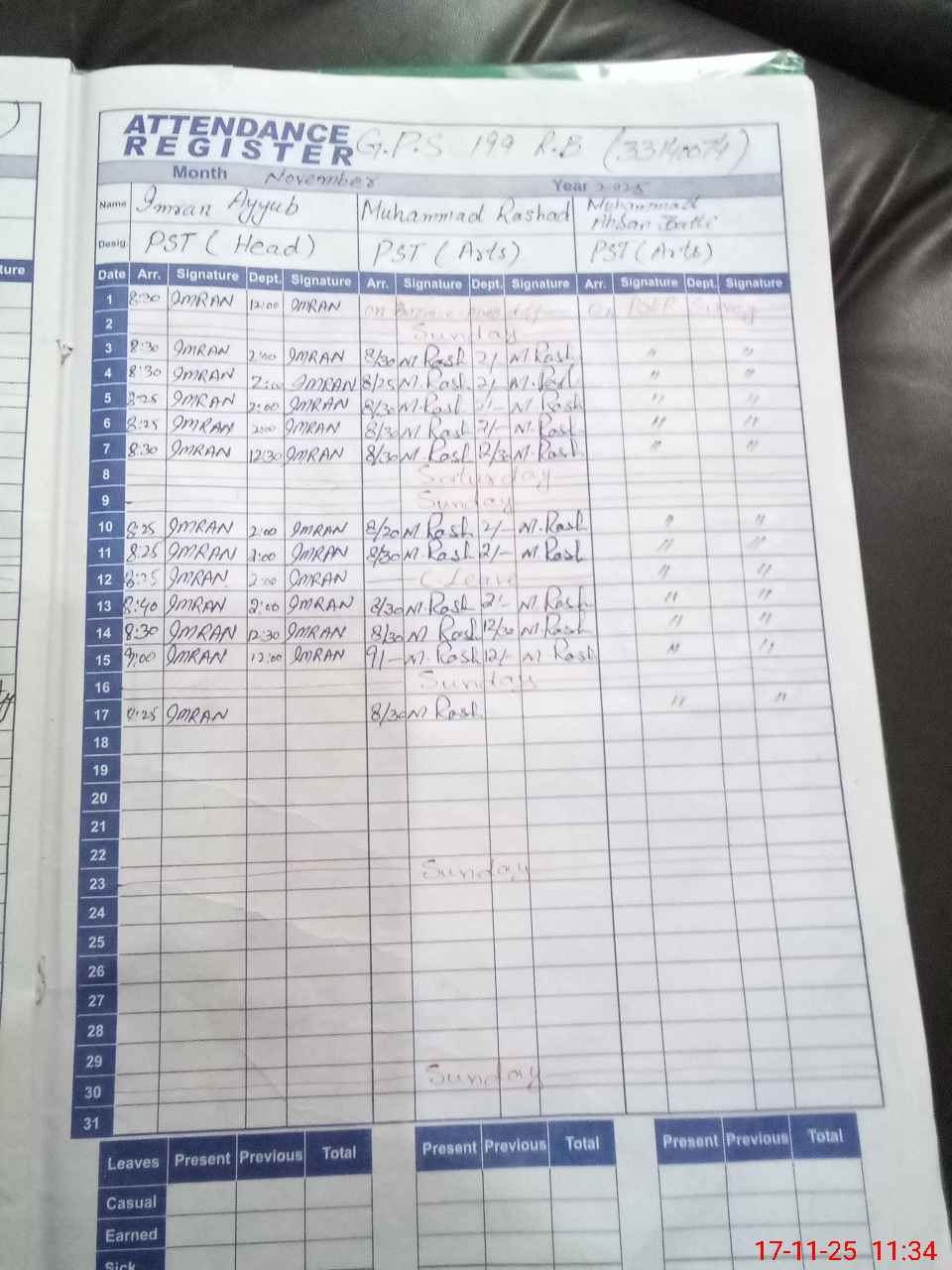 | Remarks (Use Separate Page if Required): M Usman PST un authorized absent since 27 October 2025 | |||||