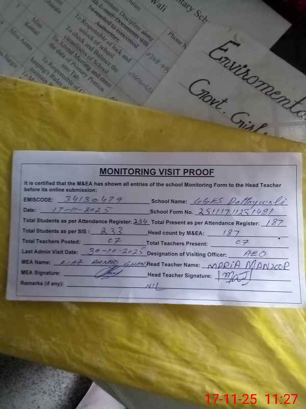 | EMIS Code: 34130479 | Name of School: GGES DATTAY WALI | |||