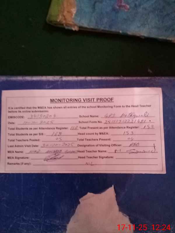 | Attendance Register | Head Teacher | MEA with School | Visit Proof |