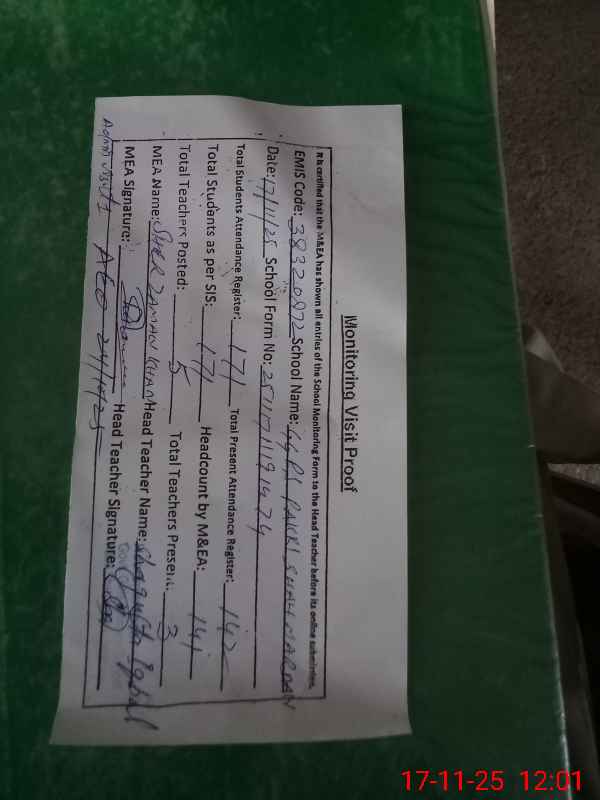 | EMIS Code: 38320872 | Name of School: GGPS PAKKI SHAH MARDAN | |||