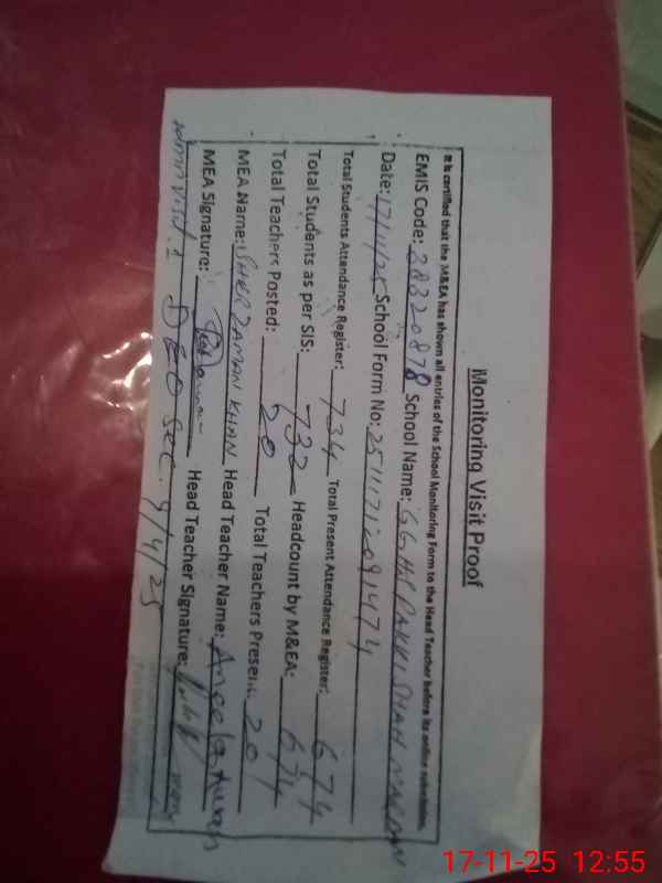 | EMIS Code: 38320878 | Name of School: GGHS PAKKI SHAH MARDAN | |||