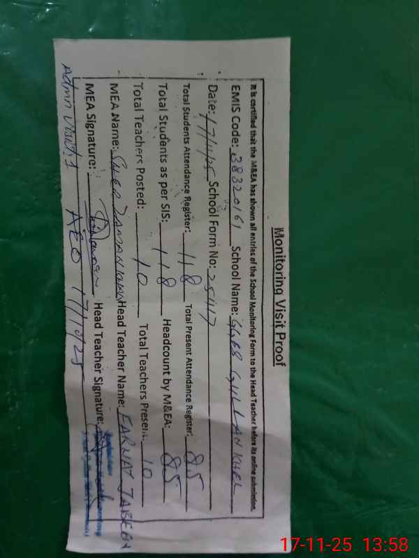 | EMIS Code: 38320161 | Name of School: GGES GULLAN KHEL | |||