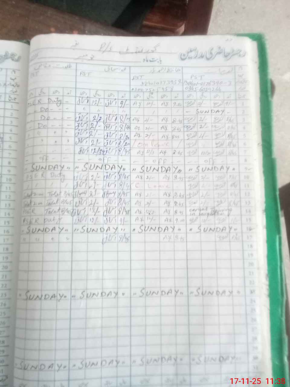 | CNIC | Full Name | Designation | R/C | Absence During Last Calender Month |