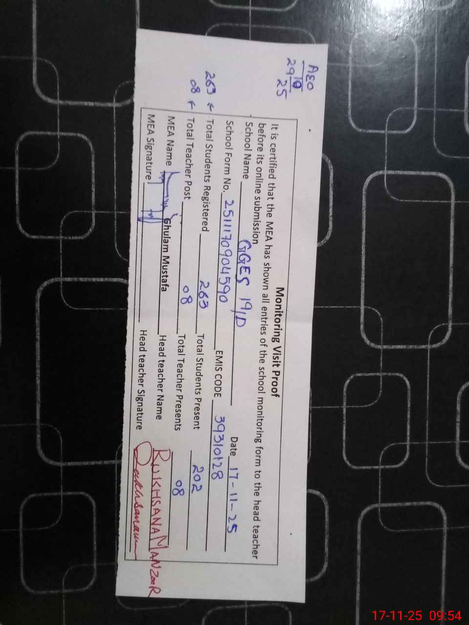 | Certified that this School was Inspected by the Undersigned MEA/DMO Today and the Information Stated Above is as Per Record. | |||||