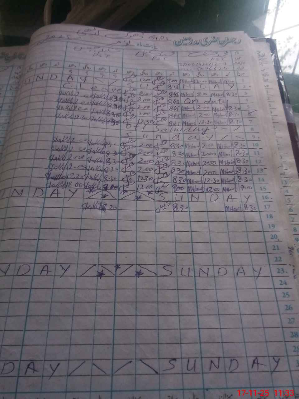 | CNIC | Full Name | Designation | R/C | Absence During Last Calender Month |