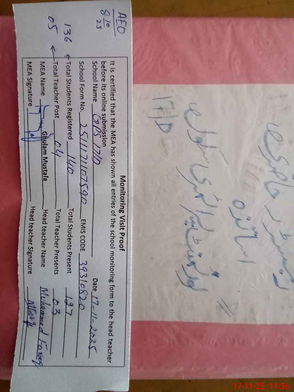 | EMIS Code: 39310820 | Name of School: GPS CHAK NO. 17-D | |||