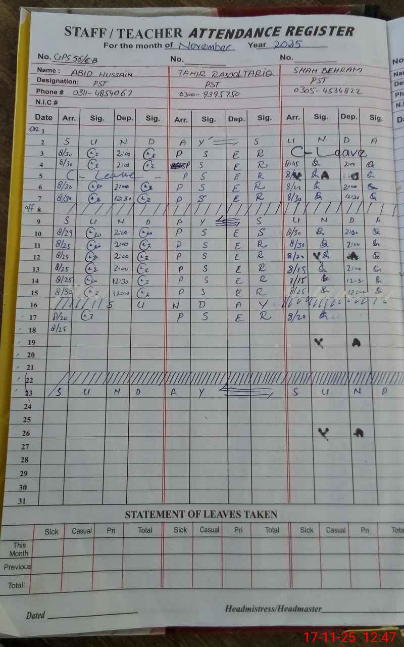 | Name: AB**** HU**** Designation: (School Headmaster's/Headmistress's) PST Phone/Cell Number: 03**** |