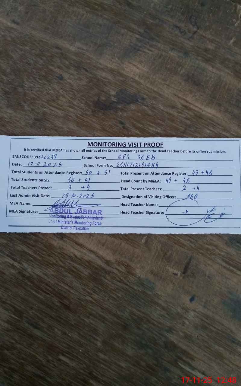 | EMIS Code: 39220239 | Name of School: GPS 56 EB | |||