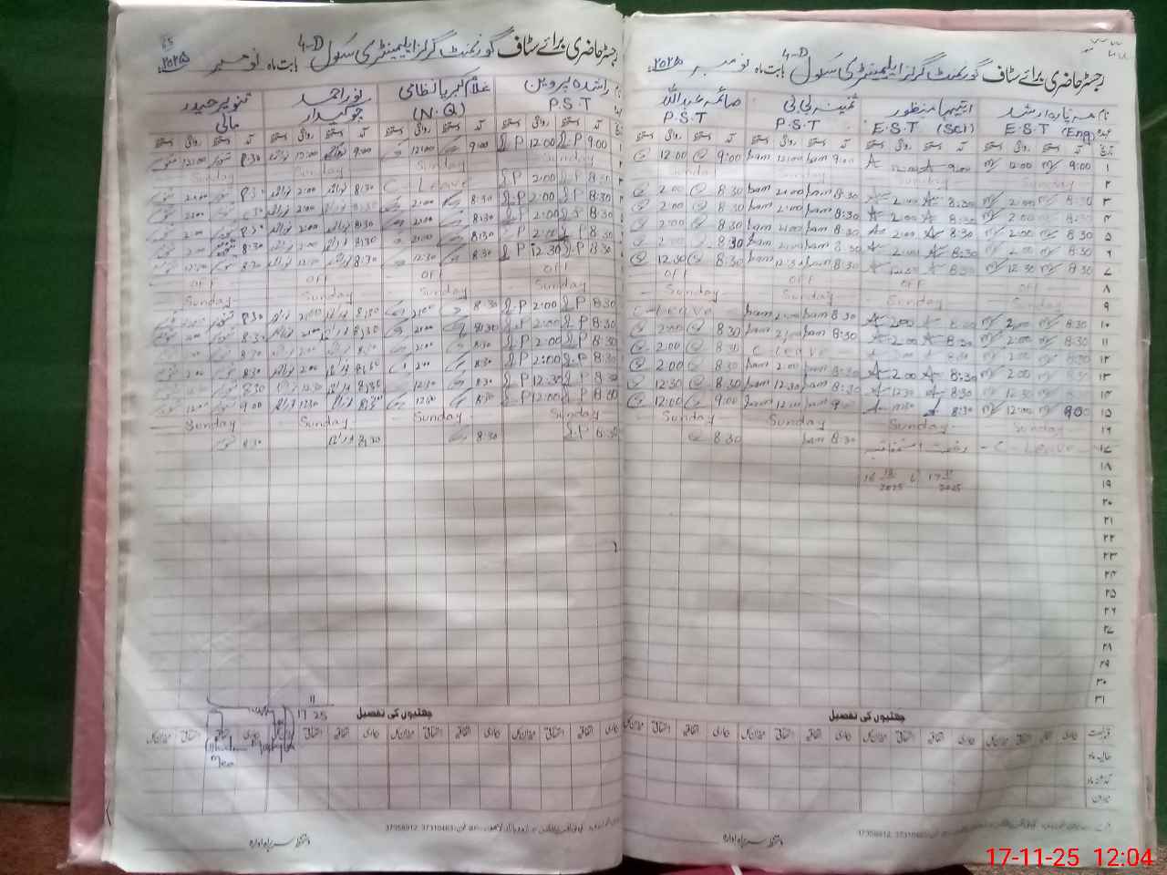 | CNIC | Full Name | Designation | R/C | Absence During Last Calender Month |