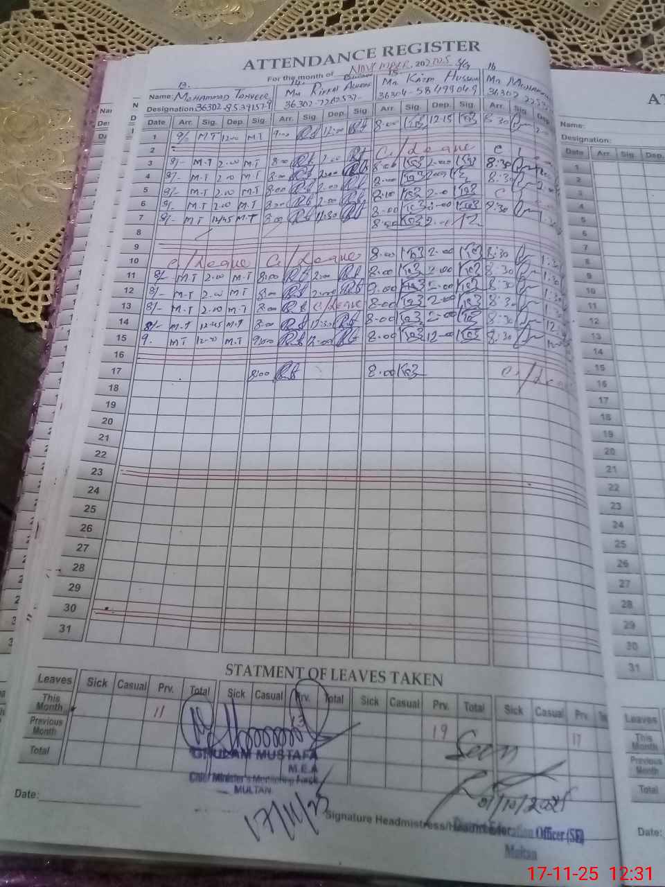| 36**** | Sy**** Al**** Sh**** | CHOWKEDAR | Regular | 0 | 0 | 0 | 0 | 0 | 0 | 0 | 0 | 0 | Casual |