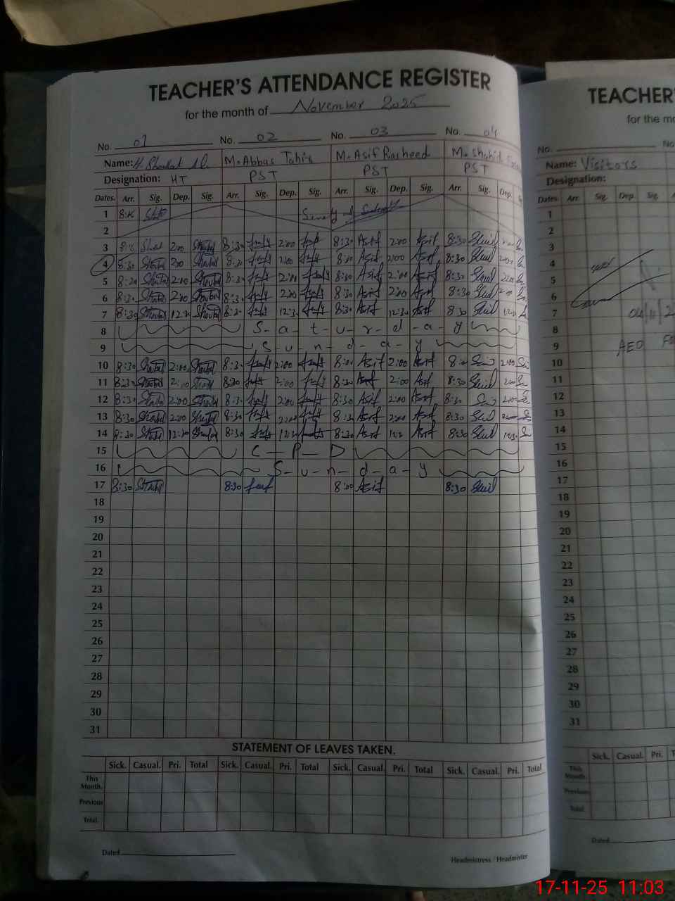 | Remarks (Use Separate Page if Required): Last administrator visit was carried out by AEO on 4 November 2025 | |||||