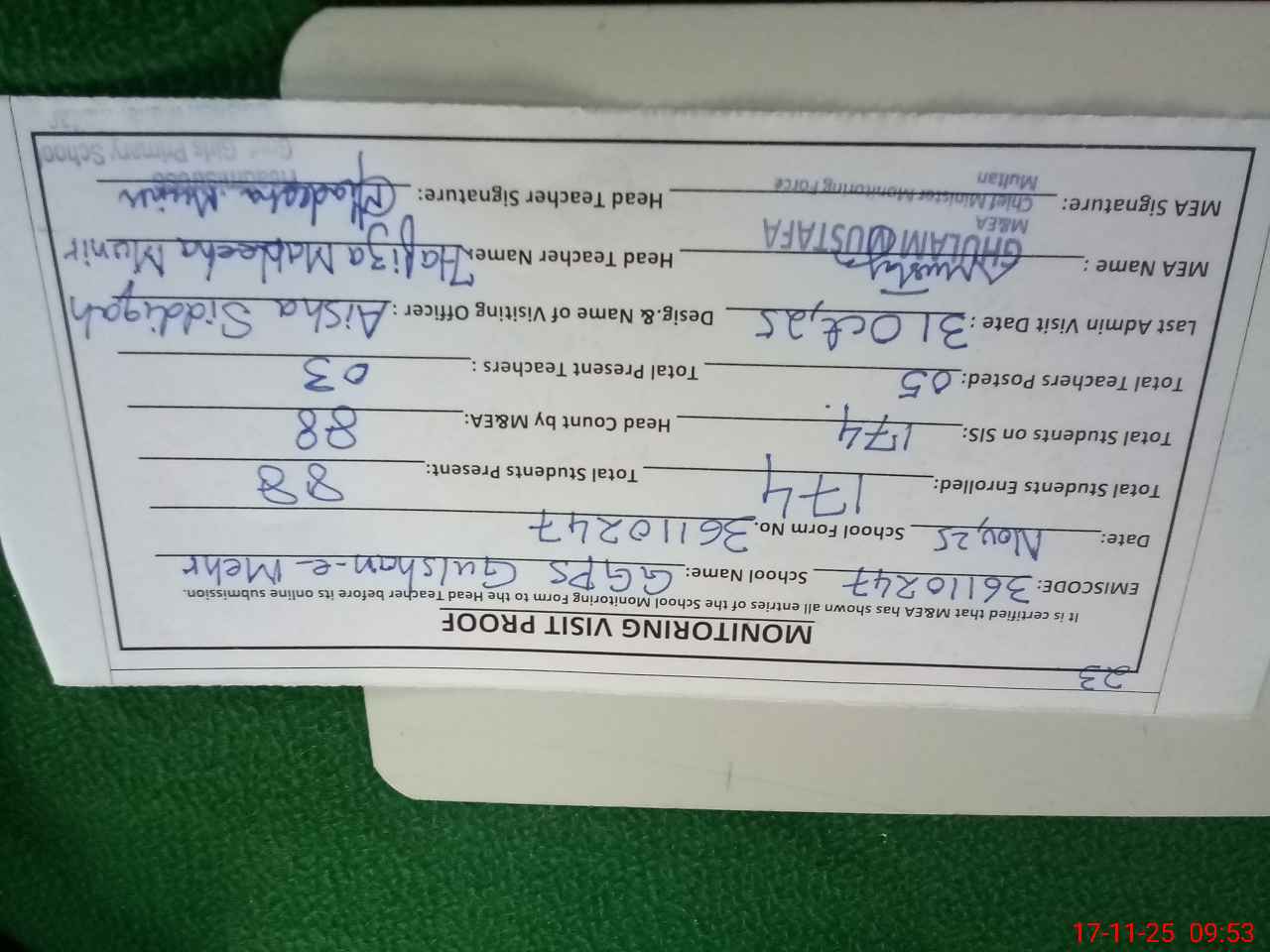 | EMIS Code: 36110247 | Name of School: GGPS GULSHAN-E-MEHAR MULTAN | |||