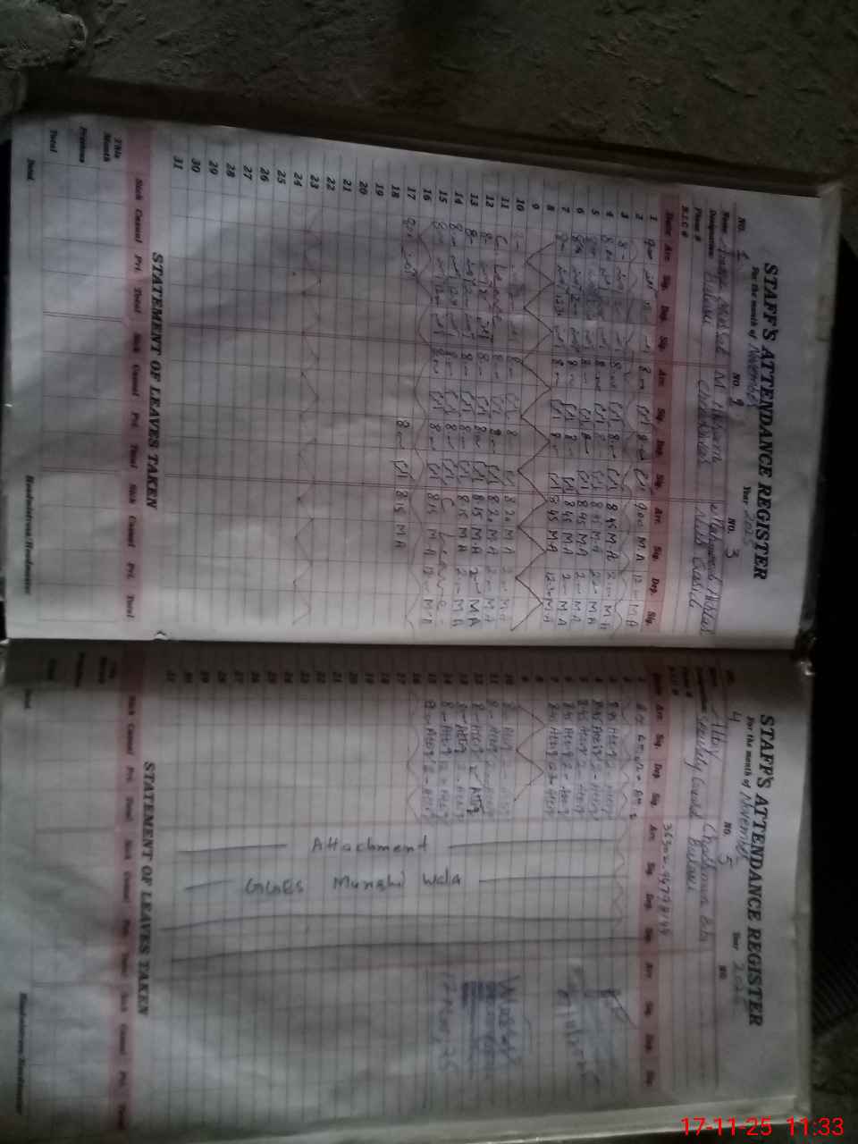 | CNIC | Full Name | Designation | R/C | Absence During Last Calender Month |