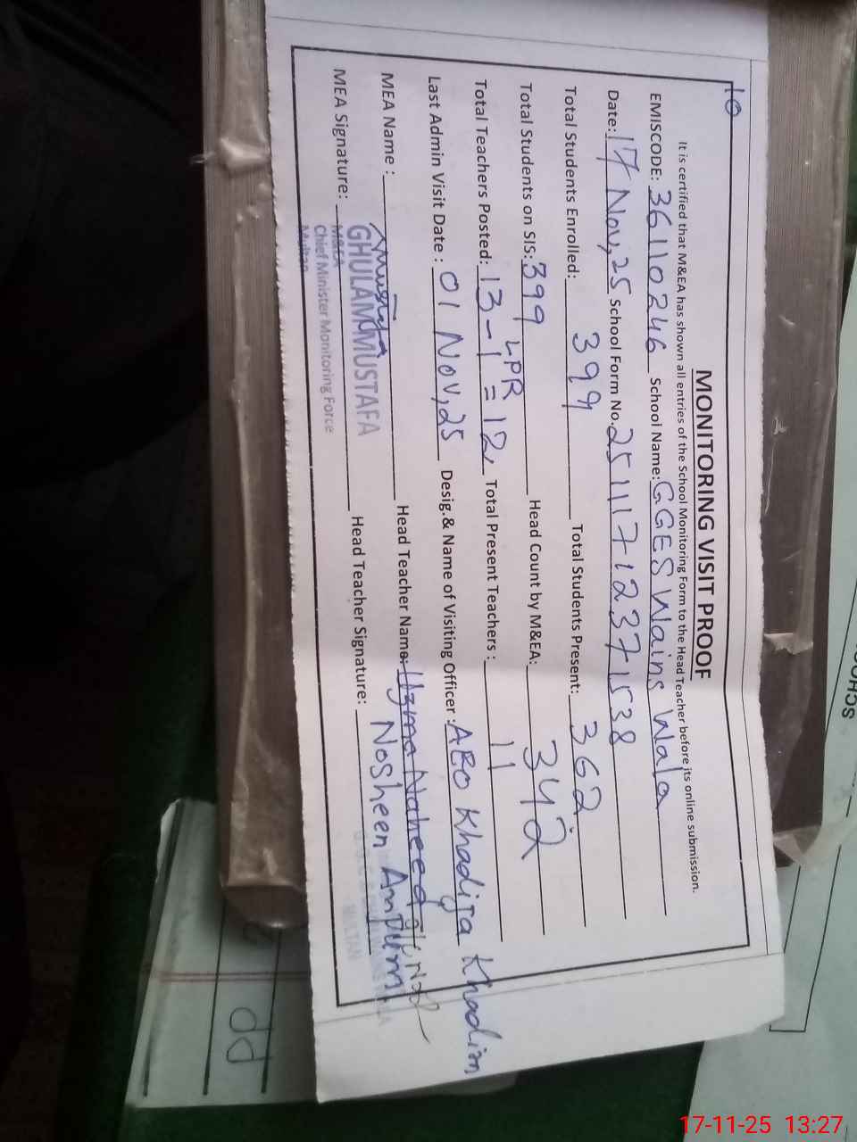 | EMIS Code: 36110246 | Name of School: GGES WAINS WALA | |||