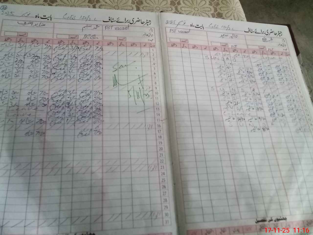 | Remarks (Use Separate Page if Required): Head teacher Muhammad Imran shown on leave but his approved leave not available NSB RECORD NOT AVAILABLE | |||||
