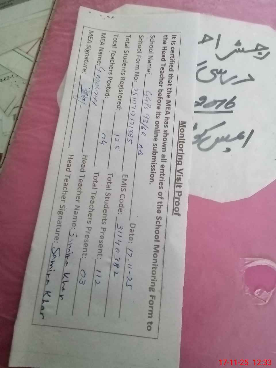 | EMIS Code: 31140382 | Name of School: GGPS 93/6-R AZAFI BASTI | |||